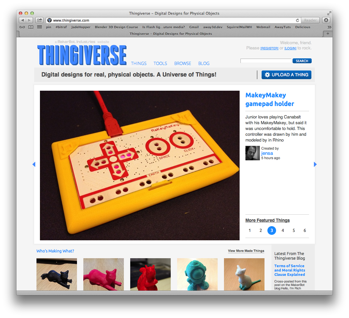 In other 3D printing news - I’m organizing the second 3DP meetup in Oslo in a few weeks and the MakeyMakey-holder I made with Walter (my son) got featured on Thingiverse! Wheee!