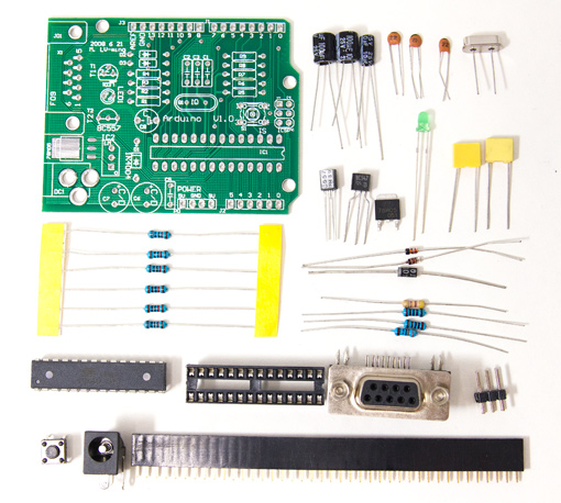 Today the gear I ordered arrived and boy was I surprised! In an antistatic bag there was a PCB that said "Arduino 1.0"? In the bag was no ATmega168 chip as it said on the Emartee site, but rather a Atmega8? This was fun! After some googling I now know that what I bought is a kit to build the first version of the Arduino Serial - designed in 2005. I had initially planned to relax and solder this up tonight, but I think I'll just keep it as a bit of Arduino history. I don't have a PC with the required Serial port around the house so I couldn't use it even if I wanted.