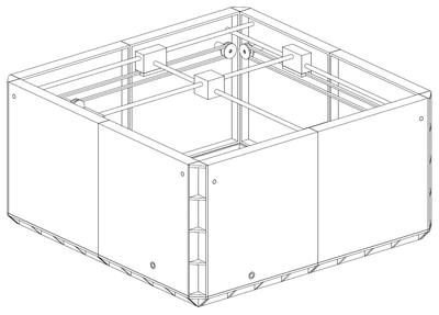 - Panel and general structure design have been steadily advancing. For the last week a "externally pocketed" panel arrangement has been evaluated (see Trimetric View below.) It is referred to as the -103. External here refers to the exterior of the enclosure formed by the panels, and not the exterior a panel itself. "Internally pocketed" follows a similar line of thought. While externally pocketed panels are ascetically pleasing, it is expected that future Columbus designs will use internally pocketed panels. This reduces the amount of parts to print/buy because internal attach points and hardware can be "grown" right out of the panel surface. For this same reason the complexity of the remaining parts to print/buy is greatly reduced. The -103 uses this to some extent, in the trimetric view note the knobs where the gantry support rods pierce the panels. These holes, and associated flanges, serve as a guide to level the rods in construction and as an attach point. The components of the -103 are meant to glued together, as opposed to the -102 (the previous workbook entry's design) being held together with printable fasteners. Again, there are numerous advantages to both schools of thought, in the end Columbus will most likely be held together with a mixture of the two. The -103's cartesian gantry design was inspired by the clip RepRap XY lighter darwin by tigertalar. See video below: