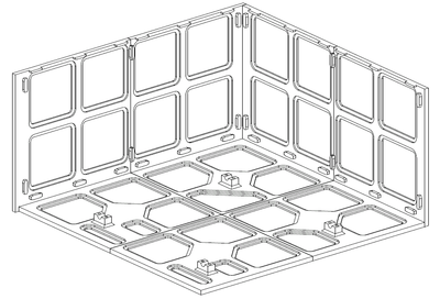 Over the last two years I have followed the RepRap movement with particular interest. However, it took the Foresight Institute's act of throwing down the gauntlet with the Gada Prize before I finally got involved with this awesome community of builders. For the last two weeks I have been thinking a lot about how to make the structure of a 3D printer 100% "printable". I decided that my design needed to free up as much internal volume as possible. In order to do this I brought the load bearing members as far away from the center of the machine as possible, thus forming an exoskeleton-like enclosure. I have designed several panels that can be linked together with printable fasteners (more on those in the future). See the following images: