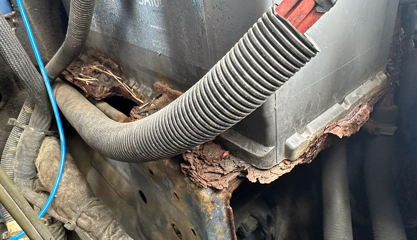 The repair shop also gave us some valuable advice for how to get the van EU approved after November 2024. They said that the engine and chassis is generally in really good shape for such an old car. It's primarily the body that is rusting and that part is possible to do yourself. We do however have some points of rust that should be fixed before sending the car to approval and one of these are the battery bearing parts. Yeah - they're quite rusty! We'll do these and some other core parts to make sure the next approval goes well.