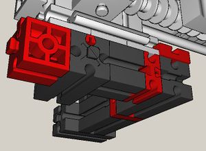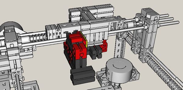 On the other hand, it should not be too difficult to modify the design such that the extruder could be replaced without too much effort. Just take care that the modified construction does not become too heavy for the x-axis thread rods or you will have to modify them as well (e.g., by integration of aluminium bricks instead of plastic parts, see above)