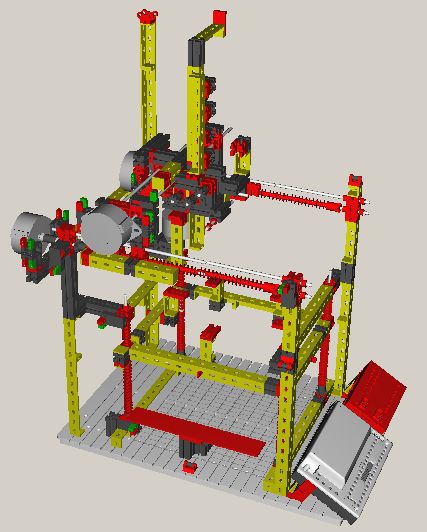 On the other hand, FischerTechnik also offers aluminium bricks which are more rigid than other parts (not only because of the material but also because they combine several connected bricks into a single, longer one). If you just replace plastic components by aluminium bricks (where possible) you will enhance the stability of the construction and reduce vibrations during the print.