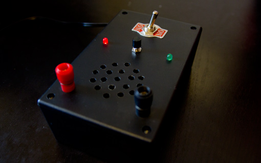 Next up was mounting it in the case and that part certainly took longer than expected. I planned the layout in Illustrator, printed it out and stuck it to the box for drilling. I didn't have an awl, so I used a nail to punch indicator holes before drilling. This caused the case to almost crack, but I kind of saved it. Drilling holes and mounting components were quite easy, but on the next part I stumbled. Might be because it was too late at night (had such a blast that I forgot time!) but I couldn't make the circuit work as intended.