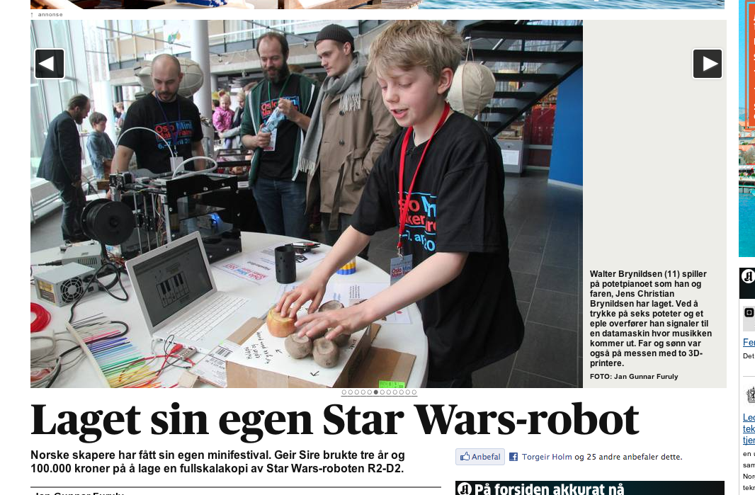 Walter gave interviews to both Aftenposten and TV2 at the event. Here he’s showing off the potato-piano he set up with a MakeyMakey.