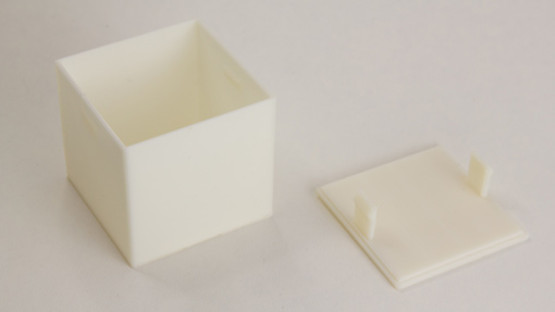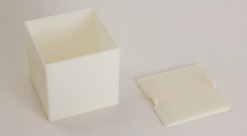 This was pretty much a complete failure. High on the success of the first cube, I didn't really think through the design of this one. The result was that the locking mechanism worked alright, but the lid could slide off sideways…. Bummer. However - this model showed that you could make really nice looking cubes with just 1.2mm walls. This is only two strands of plastic on the Makerbot and it'll actually print nicely, no matter the height of the object.