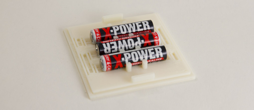 The batteries slot in nicely and are held in place, but the holes/slits for the metal bits that'll be at the ends of the batteries didn't come out as intended. I know how to fix them though, so when I have some time I'll redesign that and print a new lid. Below you can see the sample fitting of the components for the 5x5 cube. It's tight so a little extra room will help.