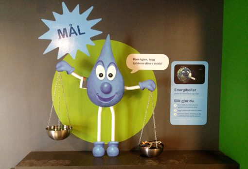 For the recent project I did at EIS (The Energy Centre at Hunderfossen Amusment Park), I needed to build a scale. As kids walk around the exhibition, they're answering questions and at the exit there is a cool-looking scale. Here you select felt-bags based on your answers and their weight decide if you got the earth (or rather scale) in balance.