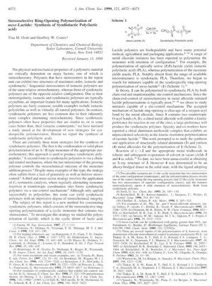 - Stereoselective Ring-Opening Polymerization of meso-Lactide: Synthesis of Syndiotactic Poly(lactic acid) [[, Page 2, Addendum|thumb]]