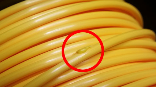Melted onto the filament was a lump of plastic from the production. This would have ruined the print on any printer. I happened to notice it, but you really don't want to see stuff like this. The material comes in the colors white, black, red, yellow, blue, green and pink so the selection isn't exactly stellar, but this is sufficient for many. Only opaque colors exist for now, so no translucent yet. When I purchased, I was first sent 1.75mm plastic despite ordering 3mm. As a compensation, they gave me half a roll of another color - so while the webshop isn't completely routined, they do offer good customer service.