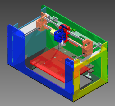 The Rap@Home is a 3D printer which was developed for a high school engineering capstone course. It primarily consists of alternate acrylic chassis for the Makerbot electronics, the fabrication of which is easy and cost-effective for high school shops equipped with a 1' by 2' laser cutter. Its development followed the formal design process, along with any other criteria which we (3 high schoolers) choose to work under. The finished product is now used by the tech department for educational use; ideally, more printers will be made available to other schools in the district. The source and funding will be handed on to future students in this course, so that they may improve and continue work on this printer. This project is currently complete; we have a working build of the original version. Subsequent participants in the project (or even you!) can use the attached source CAD to build a MK2, which is cheaper and better than the original.