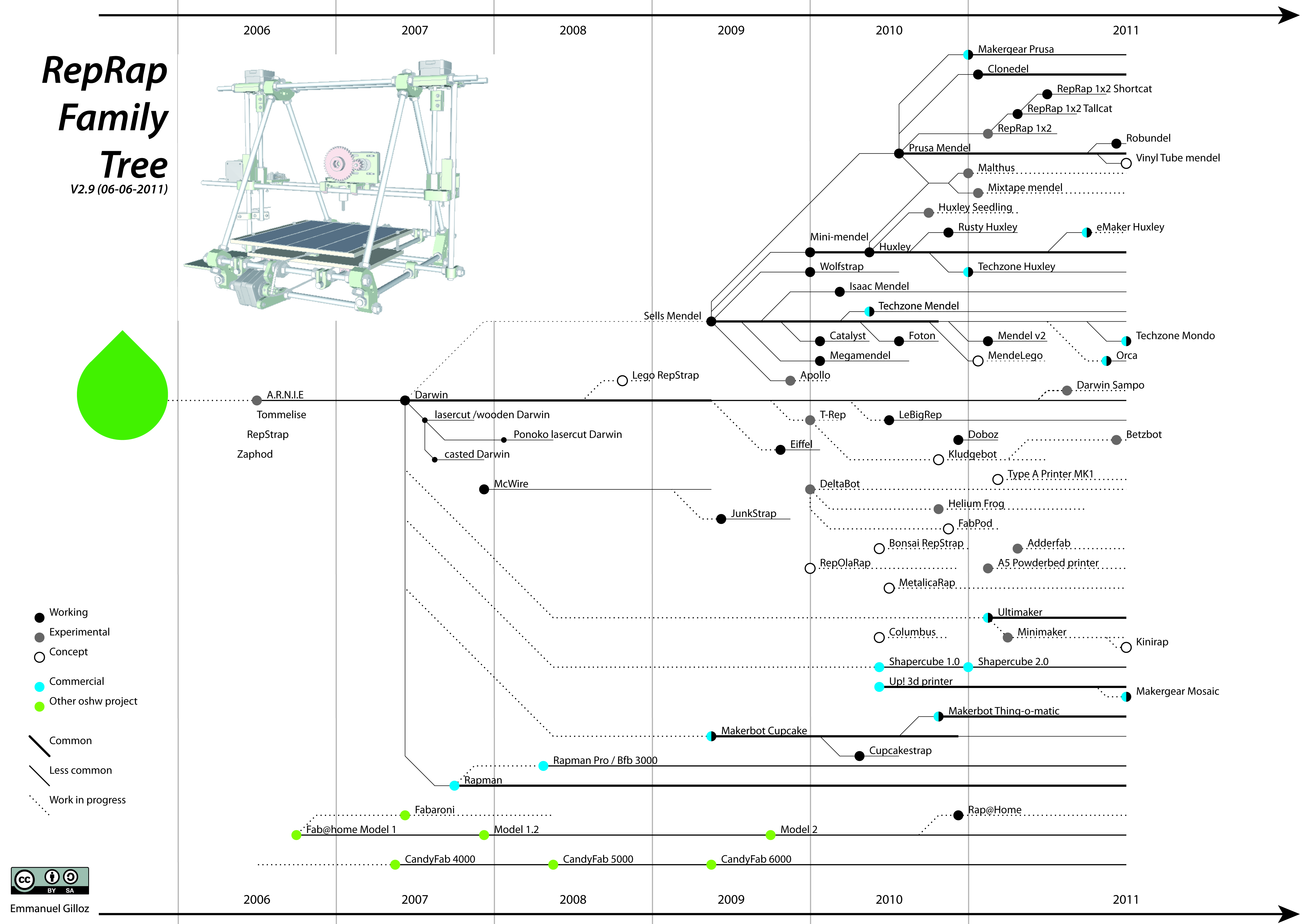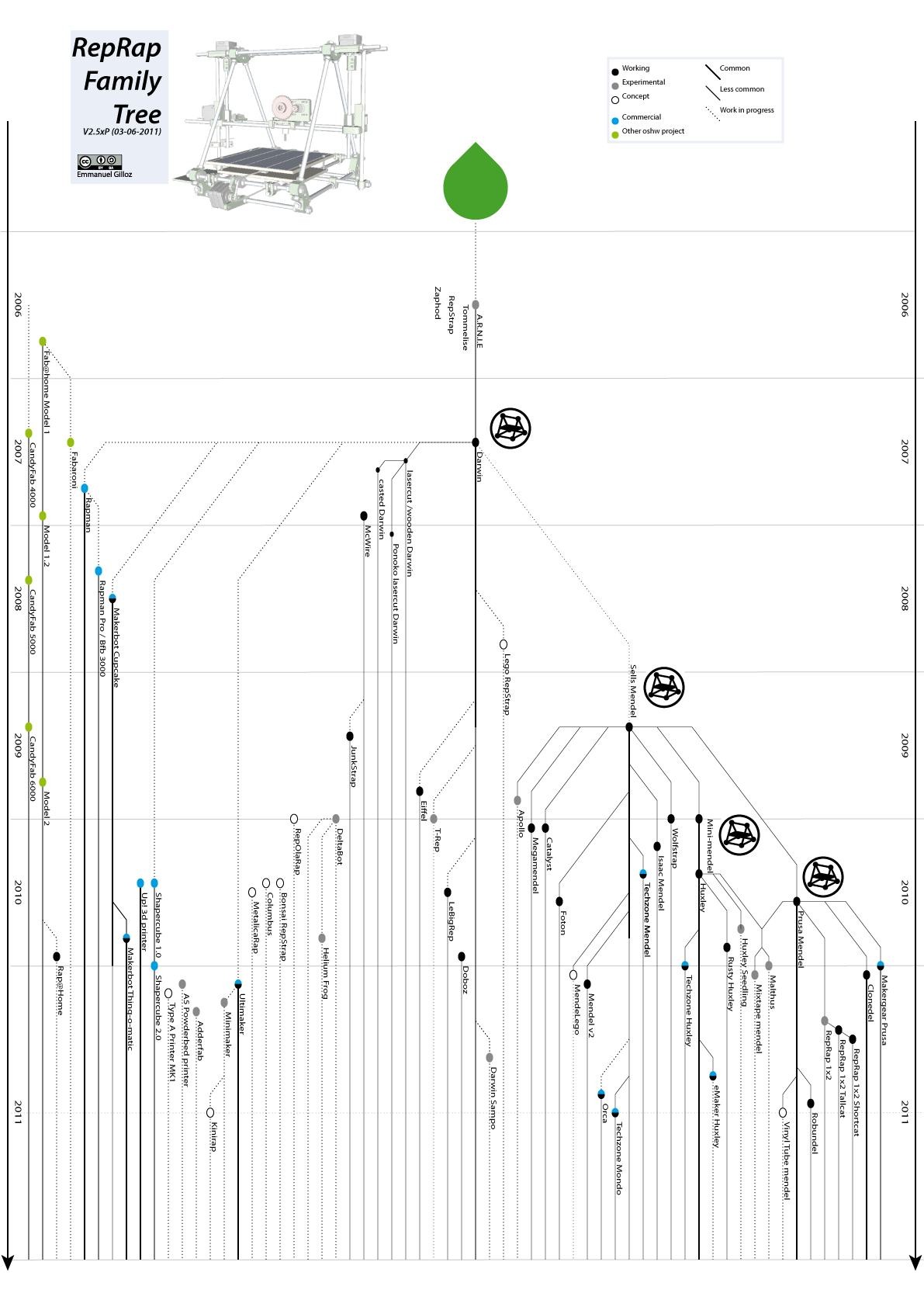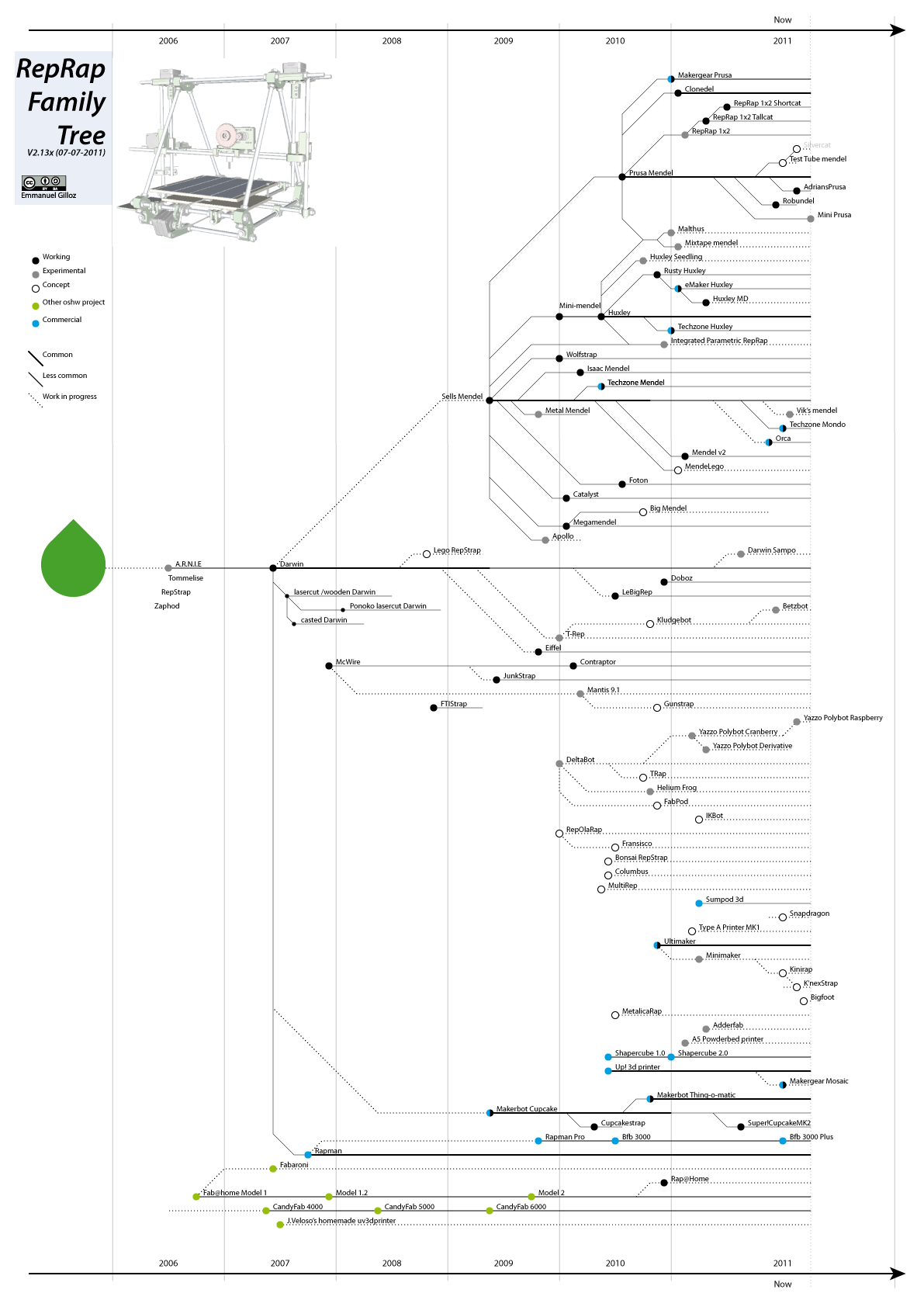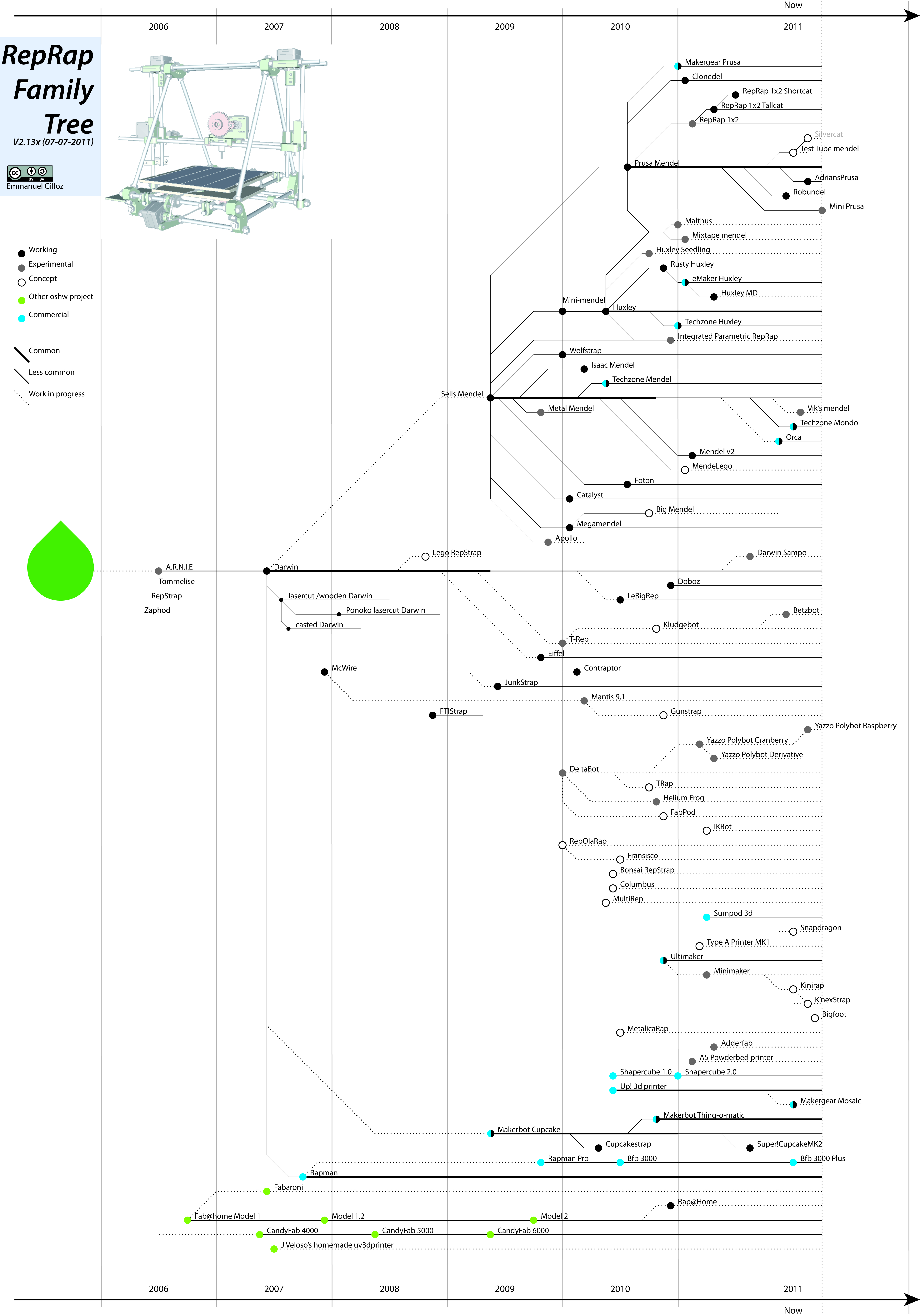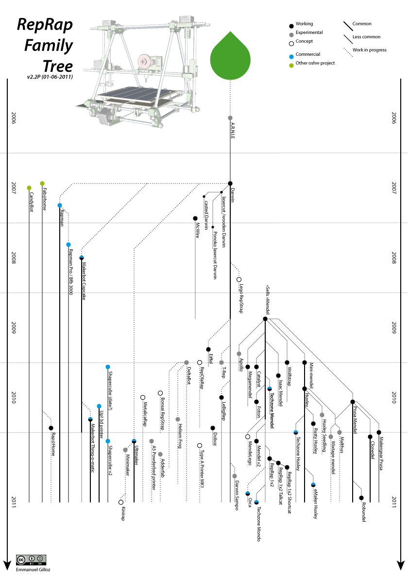 RepRap Family Tree - Timeline 2006-2012 (update in progress, slowly but surely)