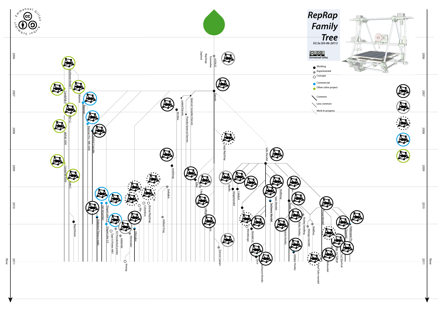 | Description | Project for an illustration of the evolution/variations of the reprap project and the others machines inspired