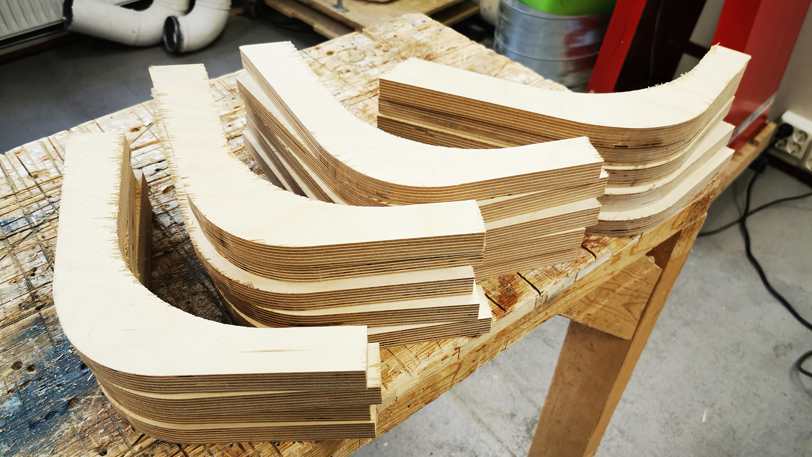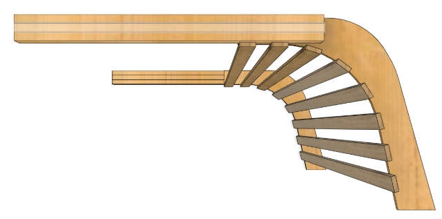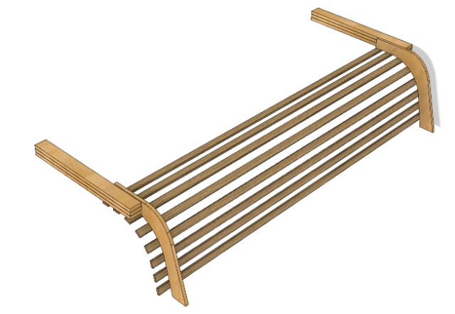 This will make a lot more sense when we later add thin strips of wood along this curve. I’ve done a small simluation in CAD, to get an impression of how it will eventually look. Imagine a dark fabric in between the ribs and the curve and you’ll get the idea.