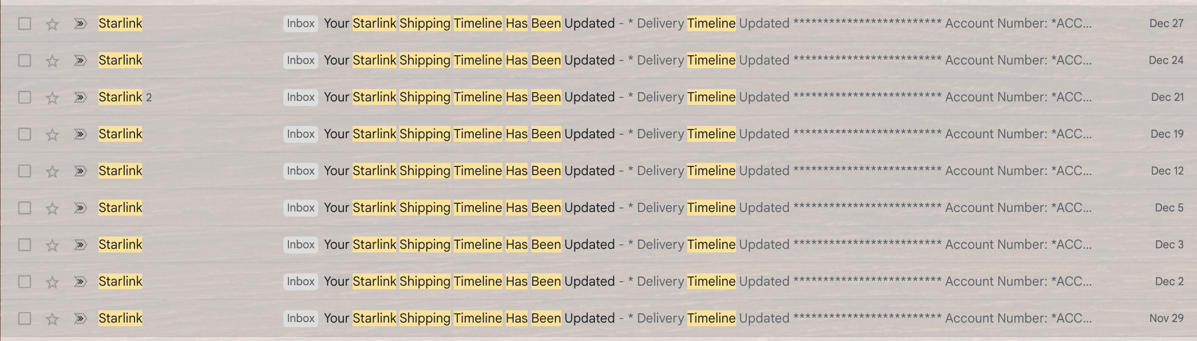 Many of Elon Musk's companies have growing pains. Just ask anyone that ever needed to get their Tesla repaired and they'll likely tell that the experience is less than stellar. I know people that have waited for more than 2 months to fix simple issues on their car. I've been on Twitter/X for ages, so when they launched the Blue checkmark, I signed up thinking it was a good idea. When the one year subscription elapsed, I got an email that looked so dodgy I didn't take it seriously. Replies to the twitter.com email account in the email bounced, so the recipient was likely one of the many Mr. Musk fired? And now I got to experience the Starlink customer service and 5+ weeks with no internet.