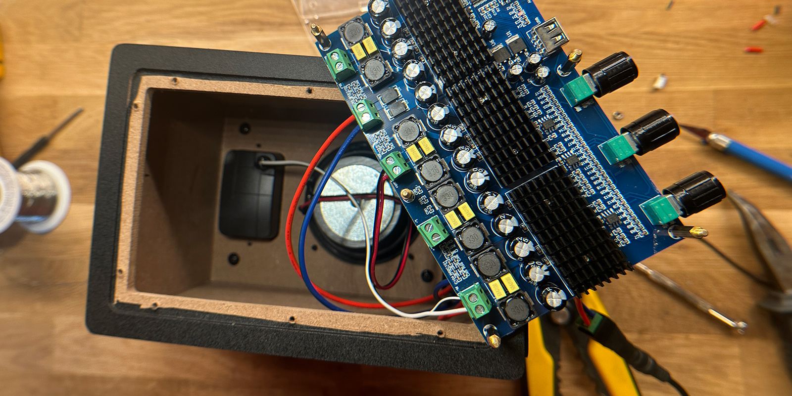 Three test prints on my Prusa 3D printer later, I could assemble the entire setup. Turned out quite nice? The 3D Models can be found on Printables if you have a pair of unrepairable Presonus speakers.
