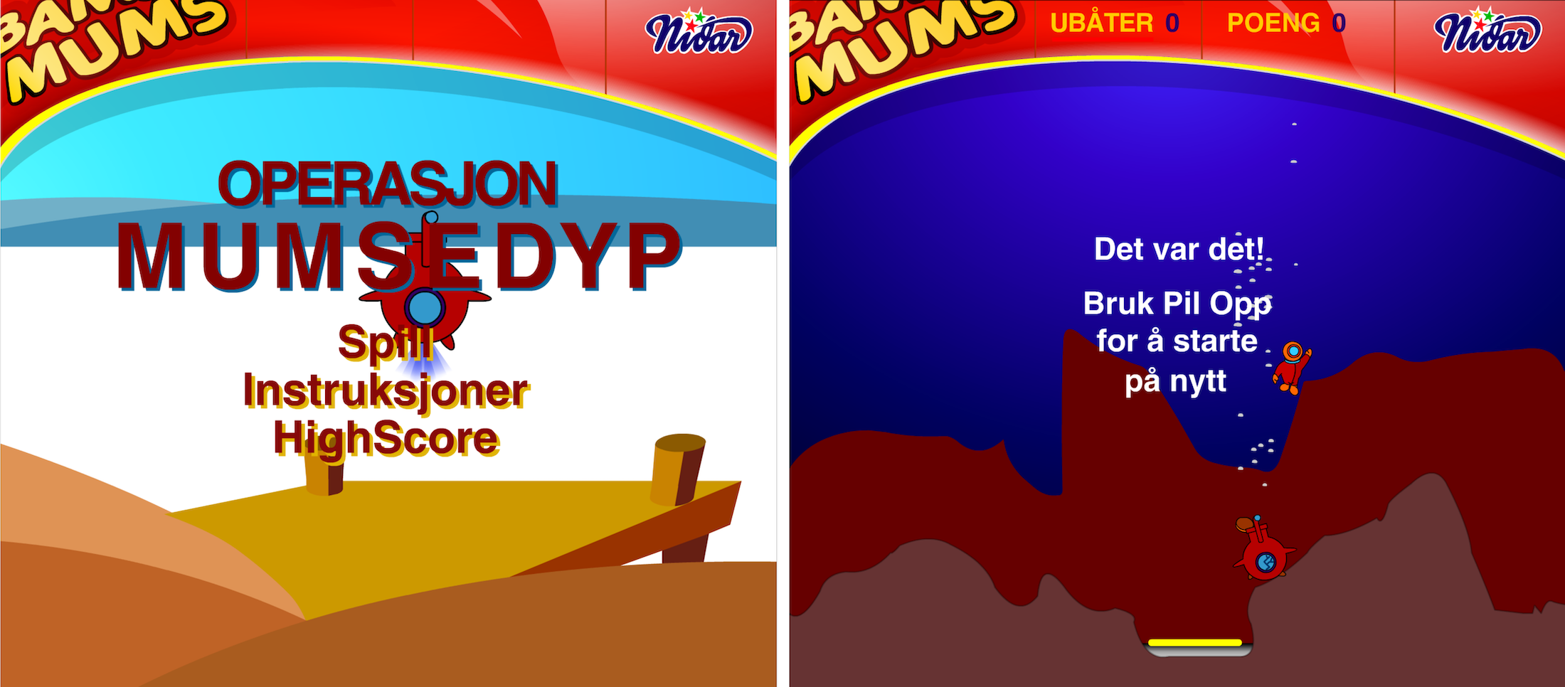 Games were swapped out over the seasons, and most of these were simple but fun games. The primary limit for these games were always the budget we were given. Making games was my primary hobby at the time, so very often we'd re-skin a game that I had already made. Here is the Lunar Lander style game called Operasjon Mumsedyp.