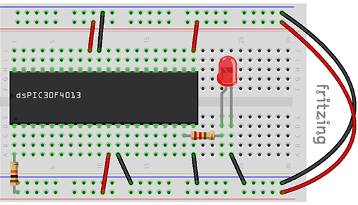 To get a bare bones dsPIC30F4013 up and running blinking a breadboard, you will need the following: