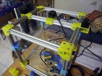 I love the modularity of using extrusions instead of laser cut sheets (300mm extrusion version, similar to an Ultimaker), this one may host 4 hotends (if you place two reprappro dual mod on each side of the carriage)