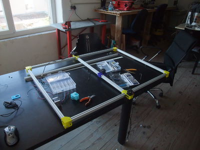 at a point the 20x20 extrusion will start to flex a little and we may add some additional feet for a big plotter frame, but we could already scale a machine to a nice size as is :)